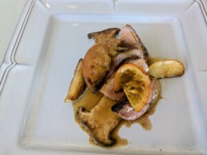 甘酸っぱいオレンジのソースは相性抜群です。是非ご賞味ください。